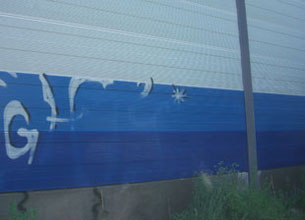 Spezielles VerfahrenMittels „Niederdruckrotationsverfahren“ (0,5 bis 1,5 bar an der Oberfläche) wird ein weiches Luft-Wasser-Mikrogranulat-Gemisch in Form eines Wirbelkegels ausgestoßen. Das Gemisch entfernt das Graffiti sanft, ohne den Untergrund zu beschädigen. Video dazu: Graffiti-Entfernung Video |